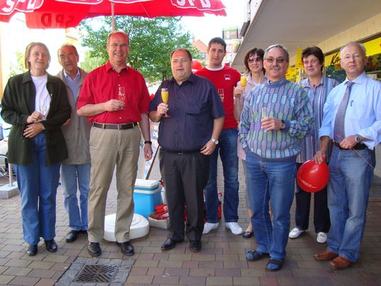 Mit einem letzten Wahlstand in der Ortsmitte beendete der SPD - Ortsverein Oftersheim knapp eine Woche vor den Kommunal- und Europawahlen die " heiße" Phase des Wahlkampfes. Auch für den Ortsvereinvorsitzenden Jens Rüttinger Zeit, eine vorläufige Bilanz zu ziehen: " Die Partei und die Gemeinderatskandidaten waren sehr engagiert, der Wahlkampf ist sehr gut gelaufen", so sein Urteil vor dem Urteil ( demjenigen des Wählers!). Gerade für die Kandidatinnen und Kandidaten, die das erste Mal kandidieren, war es nicht immer einfach, sich an belebten Plätzen der Öffentlichkeit zu präsentieren. " Mit den Oftersheimern kann man reden, sogar über politische Inhalte" , so die Meinung von Gemeinderatskandidatin Sabine Rehder. " "Und Geschenke nehmen sie auch jederzeit an" , so die scherzhaft gemeinte Bemerkung des jüngsten Kandidaten auf der SPD- Liste, Alexander Leonhardt.