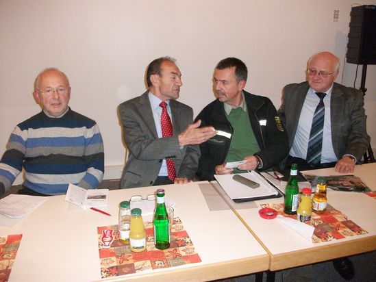 (V.l.n.r.) Die Gemeinderäte Werner Kerschgens und Peter Wierer, Forstdirektor Eick und Bürgermeister Baust „Wünschen sich die Oftersheimer Bürger einen Holz-Lagerplatz“ war ein brennendes Thema, das auf der einen Seite wertvolle Informationen lieferte und auf der anderen Seite lebhafte Diskussionen auslöste. Die beiden Sprecher des „Ökotalk-lokal“ – die Gemeinderäte Werner Kerschgens und Peter Wierer – konnten Bürgermeister Helmut Baust und Forstdirektor Sebastian Eick zu der Veranstaltung gewinnen, die wichtige Hinweise und Details gab zur Problematik der Holzlagerung im Wald bzw. auf der Oftersheimer Gemarkung.