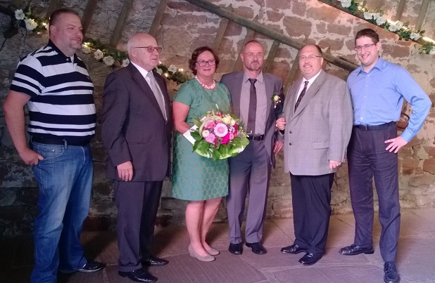 In einem wunderschönen historischen Ambiente, der alten Scheune im Gemeindezentrum in der Mannheimer Str. 59 wurde die SPD Gemeinderätin Manuela Schweizer, vormals Weber, und Hans-Günther Schweizer durch Bürgermeister Helmut Baust getraut. Pfarrerin Dr. Sibylle Rolf sprach anschließend Segensworte. Fraktionssprecher Jens Rüttinger, der von Gemeinderat Rüdiger Laser begleitet wurde, wünschte dem Brautpaar für die Zukunft alles Gute und übergab im Namen der Fraktionsmitglieder einen Blumenstrauß und ein Präsent. Für den Ortsverein gratulierte der stellvertretende Vorsitzende Alexander Leonhardt, der ebenfalls ein Präsent überreichte.