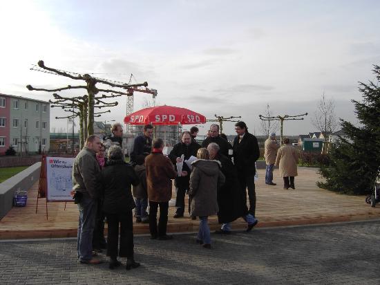 Bei Temperaturen, die schon eher an einen Wintertag erinnerten als die Tage zuvor, machte sich die Fraktion und der Vorstand der Oftersheimer Sozialdemokratie auf den nicht allzu langen Weg in das Neubaugebiet Nord-West. Bei Glühwein und Gebäck wollte man den " Neubürgern" die Gelegenheit geben, einerseits den Ortsverein der Sozialdemokratie und dessen Mitglieder kennen zu lernen; aber auch eigene Wünsche zu äußern und Probleme zu erörtern.