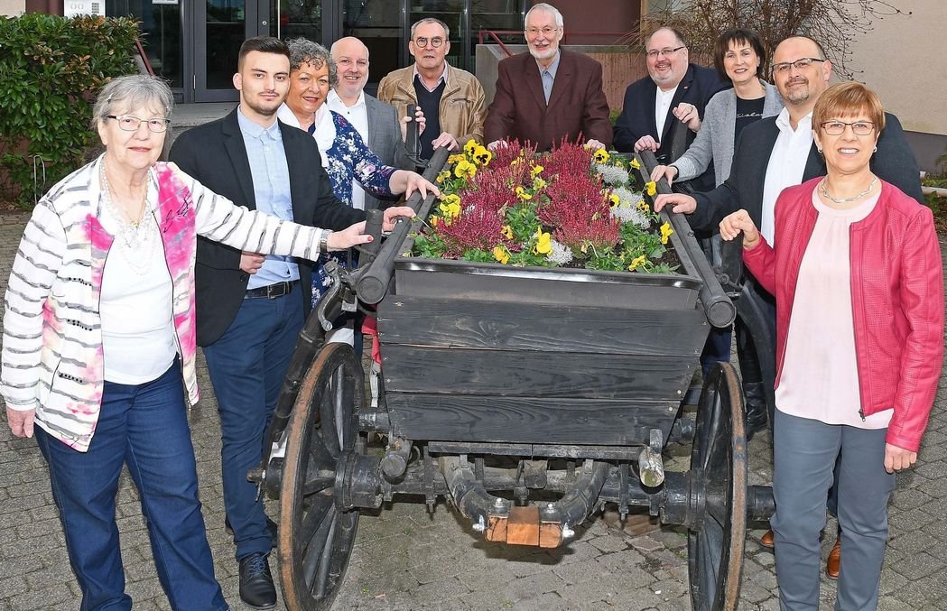 Auf dem Foto: Irmgard Appel, Egzon Fejzaj, Jutta Schneider, Jürgen Geschwill, Martin Elsner (Ersatzkandidat), Dr. Jürgen Kegler, Jens Rüttinger, Gudrun Wipfinger-Fierdel, Bernd Hertlein, Renate Schmidt