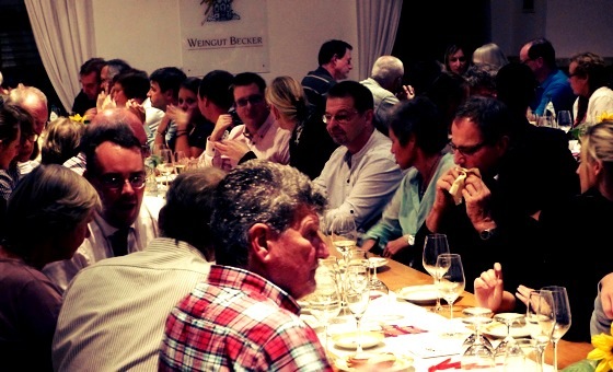 Unter der ebenso fachkundigen wie humorigen Leitung von Herbert und Alexander Becker kosteten die Gäste interessante Tropfen aus dem eigenen Haus. Besonders begeistert waren die Gäste von den intensiven Gesprächen mit Peter Friedrich, der gemeinsam mit Lars Castellucci und Thomas Funk, versuchte in einer „Reise nach Jerusalem“ mit möglichst vielen Interessierten am Tisch ins Gespräch zu kommen. Diese Art und Weise des Speed-Datings (wer bist Du, woher kommst Du, wie bist Du zur SPD gekommen, welche Erfahrungen hast Du vor Ort gemacht, etc.) sorgte für eine ausgelassene Stimmung und förderte eine Menge origineller Anekdoten zu Tage.