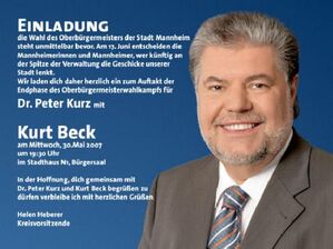 Kurt Beck, der unserer Region sehr verbundene Ministerpräsident des Landes Rheinland-Pfalz und Bundesvorsitzende der SPD ist zu Gast in Mannheim, um Dr. Peter Kurz tatkräftig zu unterstützen.