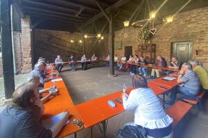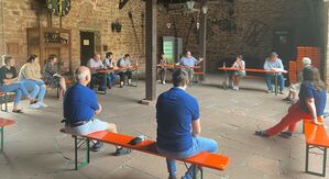 Nein, sie saßen nicht vor Videobildschirmen und es waren auch keine digital generierten Avatare, die sich in der offenen Scheune des Gemeindezentrums in der Mannheimer Straße 59 trafen. Zum ersten Mal seit über 15 Monaten trafen sich Mitglieder des SPD- Ortsvereins Oftersheim leibhaftig, um Corona-Regelkonform zu tagen, eine ganz "normale" Vorstandssitzung unter außergewöhnlichen Umständen in einer besonderen Umgebung. Auch wenn die Genossinnen und Genossen bis zum Erreichen ihres Platzes Maske trugen, so war doch die Freude über das Wiedersehen erkennbar.